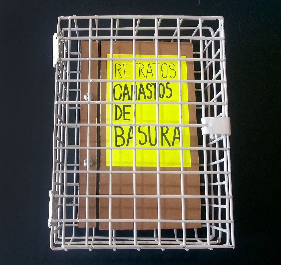 Libro con dibujos de "Canastos de Basura" del trayecto desde "mi taller hasta la psicóloga" durante 2017-2018.